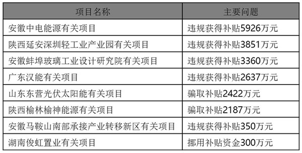 2013年6月,審計署公布《5044個能源節(jié)約利用、可再生能源和資源綜合利用項目審計結果》,其中8個違規(guī)使用資金的金太陽工程項目被查處,違規(guī)方式主要包括:編造虛假申報材料,套取、騙取資金;擠占、挪用資金用于生產經營、業(yè)務經費等支出;以“報大建小”、重復申報等方式違規(guī)獲得資金等。8個項目合計涉及違規(guī)補貼金額2.1億元。占參與抽查的金太陽工程項目資金總規(guī)模的2.58%,8個項目總規(guī)模64.298兆瓦,占被抽查總裝機規(guī)模的29%。