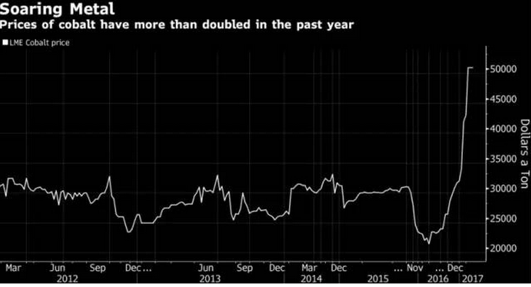 一般而言,每輛電動汽車的電池包含15公斤鈷,筆記本電腦電池包含33克鈷,智能手機(jī)電池包含6克鈷。隨著鈷需求的上升,每年10萬噸平穩(wěn)的供應(yīng)量已無法與需求相匹配,2016年鈷礦出現(xiàn)1500噸的供應(yīng)缺口,今年可能再翻一番。
