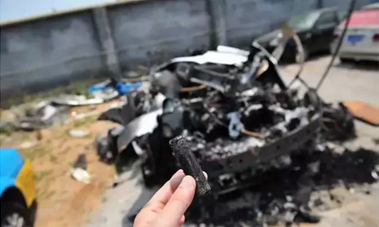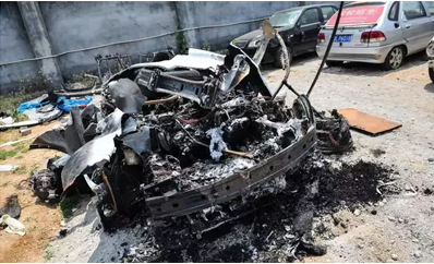 這起事故比國外的多起特斯拉起火事故都要嚴(yán)重,整臺車已經(jīng)嚴(yán)重?zé)龤?,無法辨識,并且電芯散落一地,說明受撞擊力度和火勢都非常兇猛。
