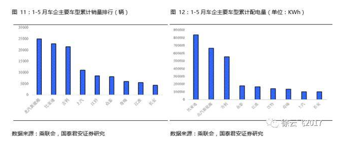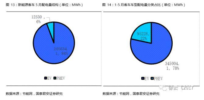 我們根據(jù)已披露的2017年5月新能源汽車銷量數(shù)據(jù),通過梳理各車企車型銷量及配電量,我們對2017年5月及1-5月的實際配電量進行了分析,緊密跟蹤鋰電池配套市場的真實結構情況。