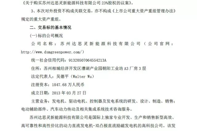 7月11日,京威股份發(fā)布公告稱,根據(jù)公司新能源汽車發(fā)展戰(zhàn)略的需要,公司以1.15億元人民幣購買蘇州達(dá)思靈新能源科技有限公司23%的股權(quán)。