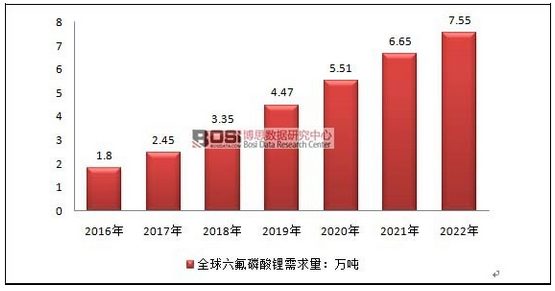 2016-2012年全球六氟磷酸鋰需求量預(yù)測(cè)
