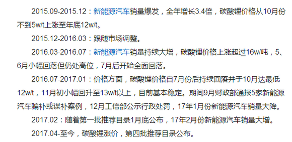 綜上可以看出,鋰電池炒作路徑可以主要從3個方面權(quán)衡,一是價格(主要跟蹤電池級碳酸鋰價格),二是銷量(主要是新能源汽車銷量),三是政策(新能源及電池相關(guān)政策)。
