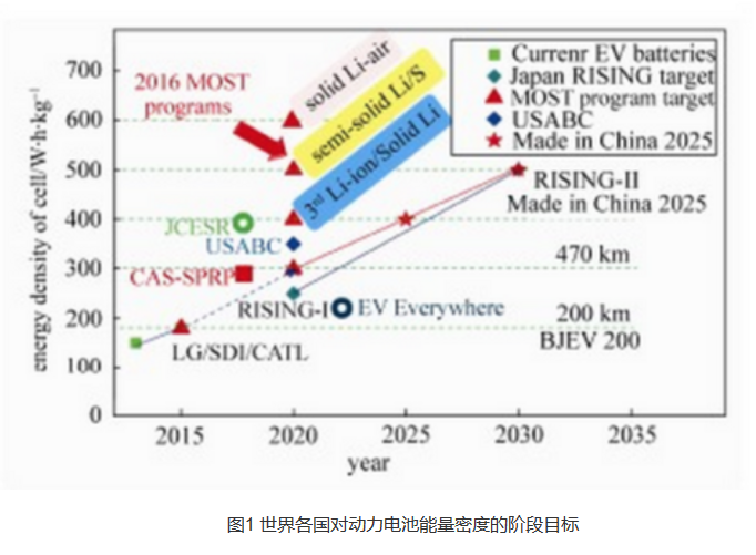 世界各國先后制訂的高能量密度鋰電池研發(fā)目標(biāo),均在積極地布局鋰硫電池、鋰空氣電池或鋰金屬電池等前瞻性技術(shù)。