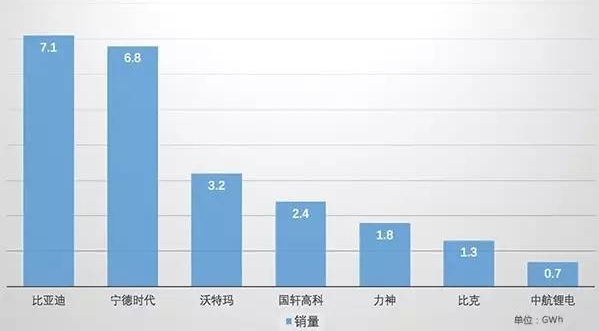 2016年國內(nèi)電池企業(yè)銷量排名 (單位GWh)