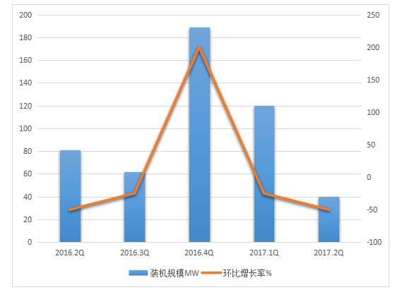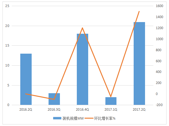 圖4 連續(xù)五個季度新增投運項目的裝機分布及環(huán)比增長率(中國)