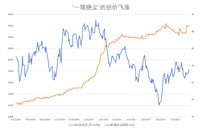 在政策支持下蓬勃發(fā)展的新能源汽車產業(yè),帶動上游電池材料需求,而作為電動車電池的主要原料,鈷價自年初以來漲幅逾70%,是所有大宗商品里表現(xiàn)最好的品種。