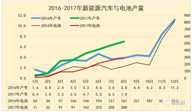 17年新能源車(chē)需求持續(xù)增長(zhǎng),形成對(duì)產(chǎn)業(yè)鏈的良好拉動(dòng),目前的1-8月的新能源汽車(chē)環(huán)比上月都是持續(xù)增長(zhǎng),逐步緩解各方的焦慮心態(tài)。