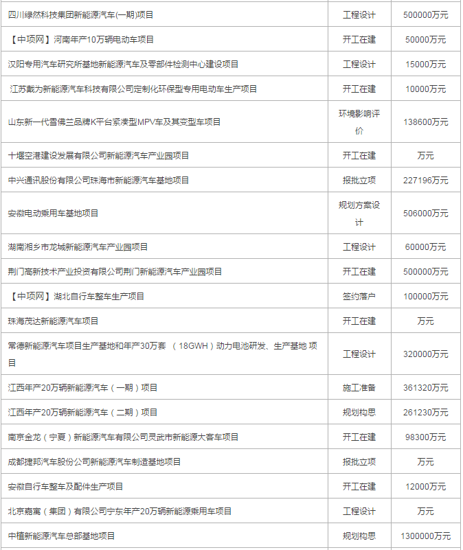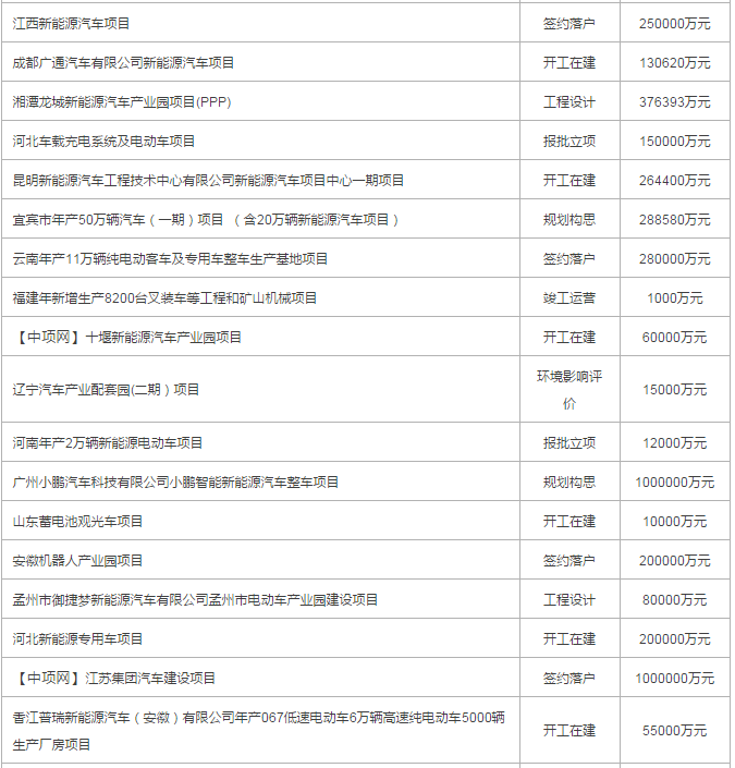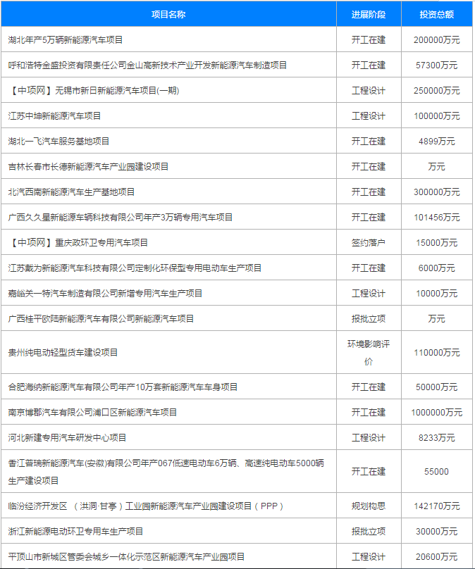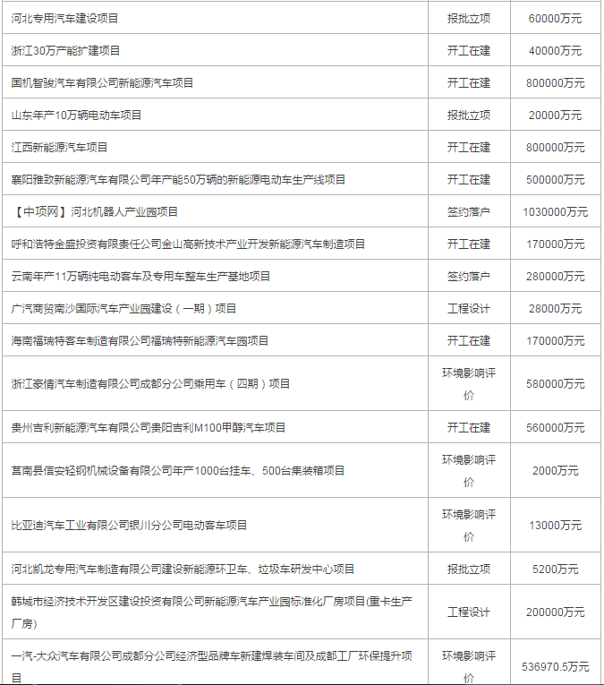 2017年8月份國內(nèi)擬在建整車、車輛項目(以下為部分項目列表)
