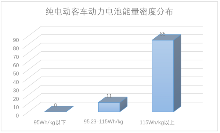 在非快充類純電動(dòng)客車(chē)動(dòng)力電池能量密度方面,分布范圍在95.23-137.27Wh/kg之間。其中95.23-115Wh/kg之間的產(chǎn)品11款,115Wh/kg以上的產(chǎn)品85款??梢?jiàn),在第9批推薦目錄中有88%的非快充類純電動(dòng)客車(chē)車(chē)型都可獲得1.2倍的補(bǔ)貼,相比第8批,可拿1.2倍補(bǔ)貼的非快充產(chǎn)品多了15款,能量密度也明顯提升,95Wh/kg以下的產(chǎn)品在本批目錄中消失。此外,本次目錄中快充類客車(chē)有4款,其中2款產(chǎn)品快充倍率超過(guò)5C,最高能達(dá)到5.28C。