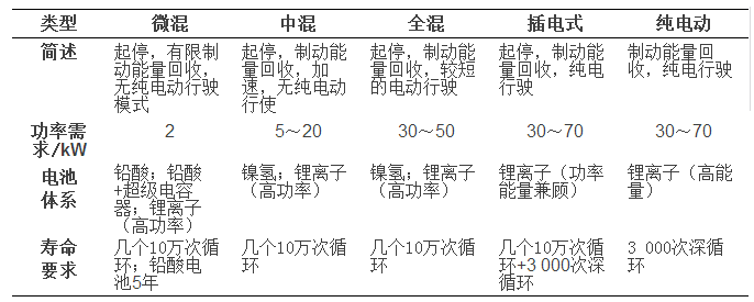 表1 不同電動(dòng)汽車對(duì)動(dòng)力電池的要求