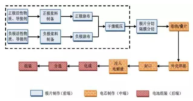在鋰電設備當中主要包括哪些呢?因為新能源汽車成敗主要在電機、電池、電控,最重要的是在電池,電池的生產(chǎn)工藝是比較復雜的,并不是我們想像的,隨便像疊沙包或者折紙飛機一樣就出來了,它主要包括極片制作、電池單元、電芯制作和電池組裝三個工段。鋰電池極片制作過程當中包括電極漿料制備,電極漿料涂布制備、滾軋、分切、極耳焊接等工序。
