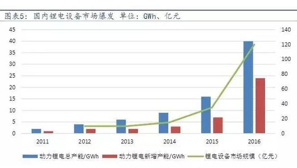 在這樣的情況下,我們做一個假設,如果說按照現(xiàn)在的新能源汽車發(fā)展速度,2014年我們的鋰電設備也就30多億需求,2015年達到了70多億,2016年突破110億,今年突破150億是沒有什么問題的,那么估計到2020年左右,我們每年這一塊對應的規(guī)模,僅僅是國內就會超過200億規(guī)模。