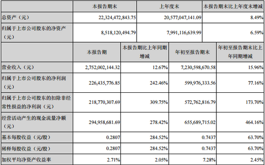 中材科技近日披露了三季報(bào)數(shù)據(jù)顯示,公司前三季度主導(dǎo)產(chǎn)業(yè)整體經(jīng)營情況良好,各項(xiàng)主要經(jīng)營指標(biāo)均好于去年同期。截至2017年第三季度,公司實(shí)現(xiàn)歸屬于上市公司股東的凈利潤59,997.63萬元,較上年同期增長77.16%,實(shí)現(xiàn)歸屬于上市公司股東的扣除非經(jīng)常性損益的凈利潤57,276.28萬元,較上年同期增長173.70%。截止2017年9月30日,公司總資產(chǎn)為2,232,447.28萬元,較上年同期增長8.49%,歸屬于上市公司股東的凈資產(chǎn)為851,812.05萬元,較上年同期增長6.59%。
