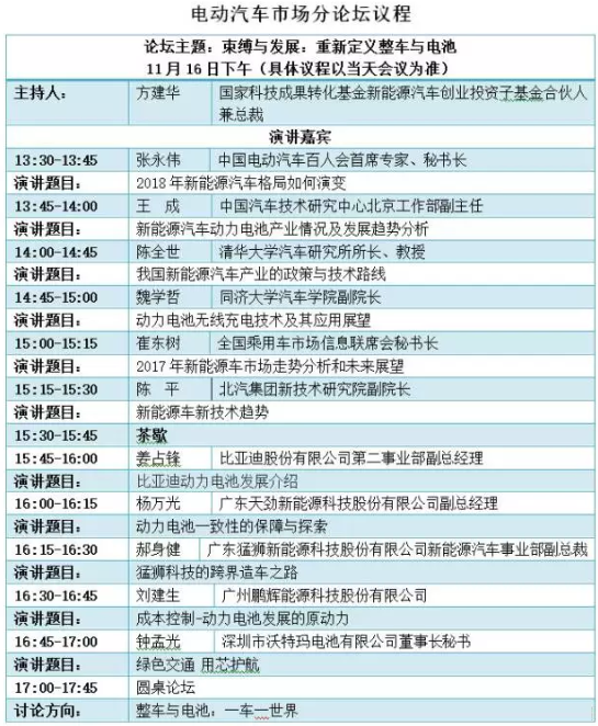 作為主辦方之一的電池中國網(wǎng),第一時間披露電動汽車市場分論壇主要議程。透過議程,盡管名為“分論壇”,但從演講嘉賓、演講議題來看,這場論壇仍然可以說是“群星閃耀”,“亮點紛呈”。