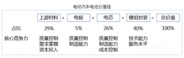 在鋰電池產(chǎn)業(yè)鏈當(dāng)中,電芯的制造與電池模組的封裝是兩個(gè)核心的環(huán)節(jié)。根據(jù)測(cè)算,在新能源汽車(chē)鋰動(dòng)力電池的成本構(gòu)成中電極與電芯的制造占據(jù)了總成本的31%,模組封裝則占據(jù)總成本的40%。