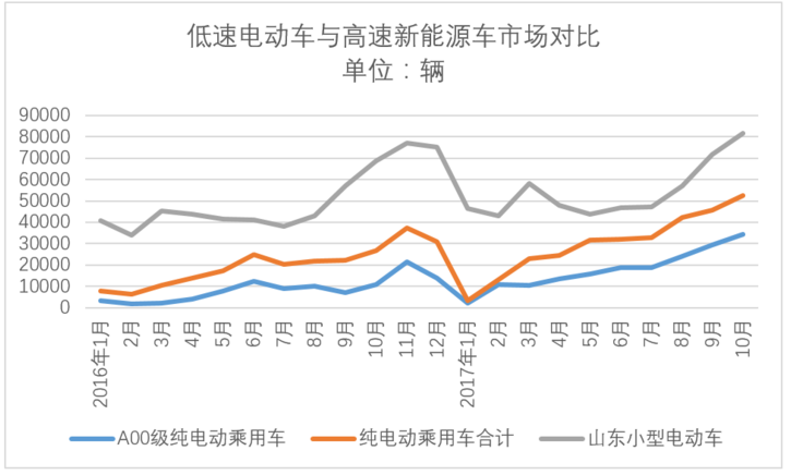 另一方面,根據(jù)中汽協(xié)數(shù)據(jù)統(tǒng)計(jì),1-10月全國(guó)新能源汽車(chē)?yán)塾?jì)生產(chǎn)51.7萬(wàn)輛,與山東低速電動(dòng)車(chē)產(chǎn)量的差距進(jìn)一步縮小??梢?jiàn),高低速純電動(dòng)車(chē)型已然到了可以分庭抗禮的階段,正像御捷集團(tuán)董事長(zhǎng)張立平預(yù)言所說(shuō),就2017年整個(gè)純電動(dòng)汽車(chē)行業(yè)而言,高低速電動(dòng)車(chē)的海平面將被拉平。