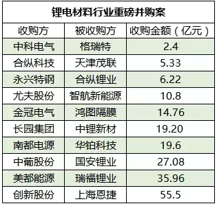 我國(guó)作為全球最大的新能源汽車市場(chǎng)擁有者,先后出臺(tái)過多項(xiàng)政策扶持產(chǎn)業(yè)發(fā)展。其中,《乘用車企業(yè)平均燃料消耗量與新能源汽車積分并行管理辦法》堪稱今年行業(yè)內(nèi)最重要的一項(xiàng)政策,對(duì)促進(jìn)節(jié)能與新能源汽車協(xié)同發(fā)展意義重大。隨著新能源汽車發(fā)展駛?cè)?ldquo;快車道”,處于產(chǎn)業(yè)鏈中游的動(dòng)力鋰電池也迎來了快速發(fā)展的機(jī)遇期。自2009年以來,始終保持正增長(zhǎng)的鋰電市場(chǎng)一片繁榮,并購(gòu)熱潮持續(xù)升溫,甚至吸引到大批其他行業(yè)巨頭跨界并購(gòu),交易范圍囊括鋰、鎳、鈷等礦產(chǎn)資源,正極材料、負(fù)極材料、隔膜和電解液等四大材料及電池制造等。以下從四大材料角度出發(fā),盤點(diǎn)了今年以來國(guó)內(nèi)鋰電材料領(lǐng)域發(fā)生的10大重磅并購(gòu)案,以饗讀者。