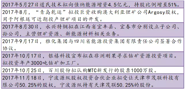 第五股力量,就是各種跨界資本。這些企業(yè)大多數(shù)在其他領(lǐng)域早有建樹,積累了充裕的資金。希望通過進(jìn)軍鋰電業(yè)務(wù),布局上游稀有礦產(chǎn)資源,刺激公司業(yè)務(wù)增長。