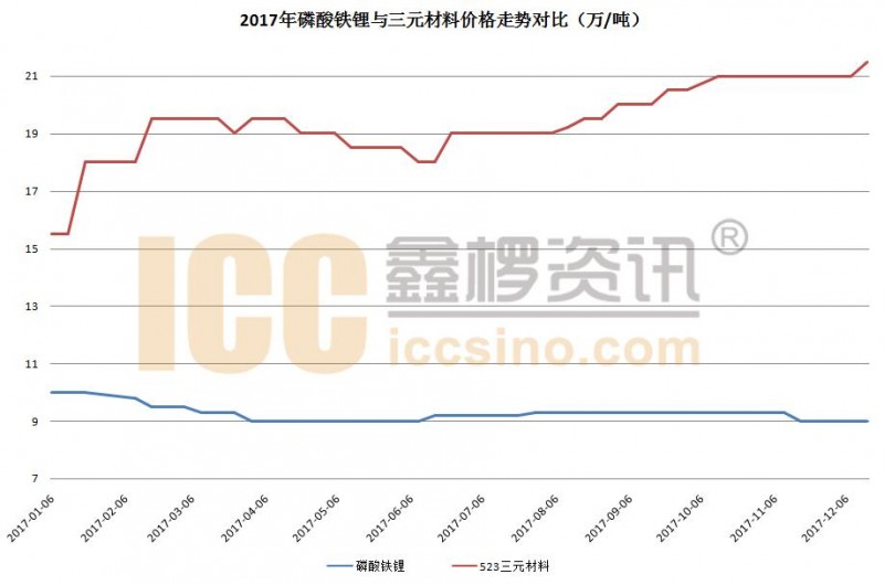 小編從后臺拉出了全年的價格數(shù)據(jù),如果只對比三元材料和磷酸鐵鋰,最明顯的就是兩者的價格差明顯拉大:年初三元材料15.5萬/噸,鐵鋰10萬/噸,價格差為5.5萬/噸;而截止12月下旬,三元材料價格飆升至21.5萬/噸,鐵鋰則僅勉強維持在9萬/噸,價格差拉大到12.5萬/噸。