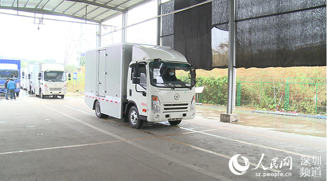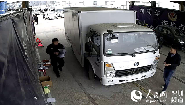 查驗(yàn)點(diǎn)監(jiān)控視頻顯示,新沃運(yùn)力新能源物流車正在接受檢查。視頻截圖