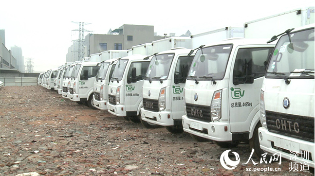 1月5日,本網(wǎng)來(lái)到網(wǎng)傳的“囤車”地點(diǎn)——深圳市坪山區(qū)蘭竹大道的華控賽格廠房(下稱“賽格倉(cāng)”),看到空地上整齊地停放著大量白色的新能源物流車,絕大部分由大運(yùn)公司生產(chǎn)。這些“輕卡”大都沒有上牌,擋風(fēng)玻璃上貼著“已過線”的藍(lán)色標(biāo)簽。