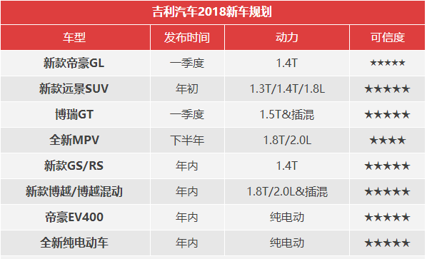 不過(guò)在吉利汽車(chē)2018年的新車(chē)規(guī)劃中,我們看到了吉利汽車(chē)把新能源車(chē)型放在了首要位置,同時(shí)也是占比更多的車(chē)型,除了我們熟悉的帝豪EV系列電動(dòng)車(chē)外,吉利更有全新電動(dòng)車(chē)型的推出,2020年的戰(zhàn)略計(jì)劃,吉利全靠你們了。