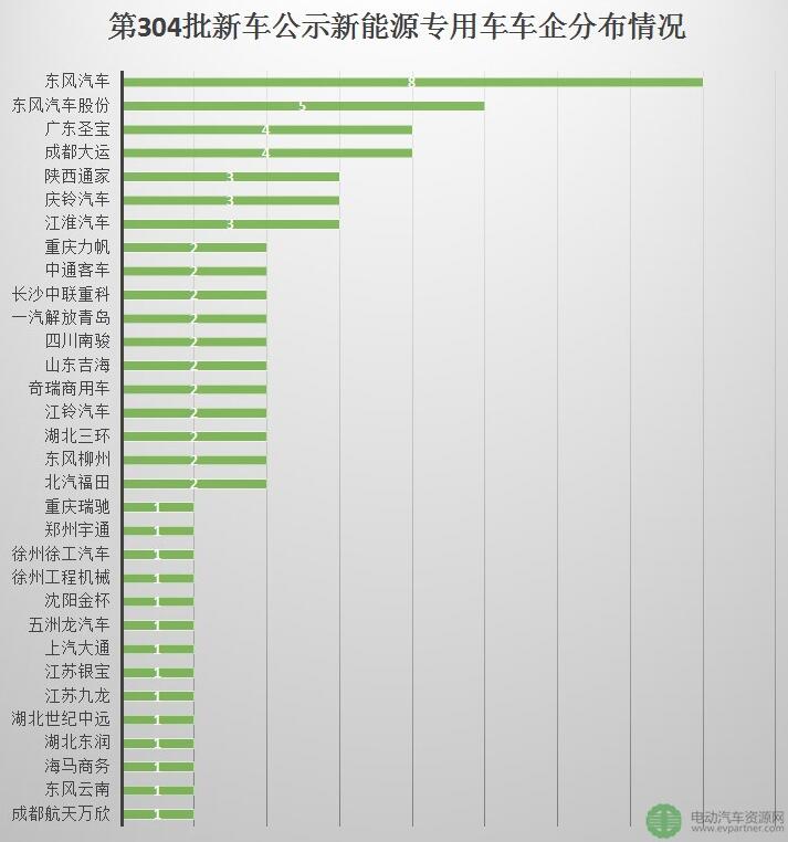 二、第304批新車公示新能源專用車車企分布情況
