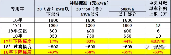 原文:2018年2月12日起實(shí)施,2018年2月12日至2018年6月11日為過渡期。過渡期期間上牌的新能源乘用車、新能源客車按照《財政部 科技部工業(yè)和信息化部 發(fā)展改革委關(guān)于調(diào)整新能源汽車推廣應(yīng)用財政補(bǔ)貼政策的通知》(財建〔2016〕958號)對應(yīng)標(biāo)準(zhǔn)的0.7倍補(bǔ)貼,新能源貨車和專用車按0.4倍補(bǔ)貼,燃料電池汽車補(bǔ)貼標(biāo)準(zhǔn)不變。