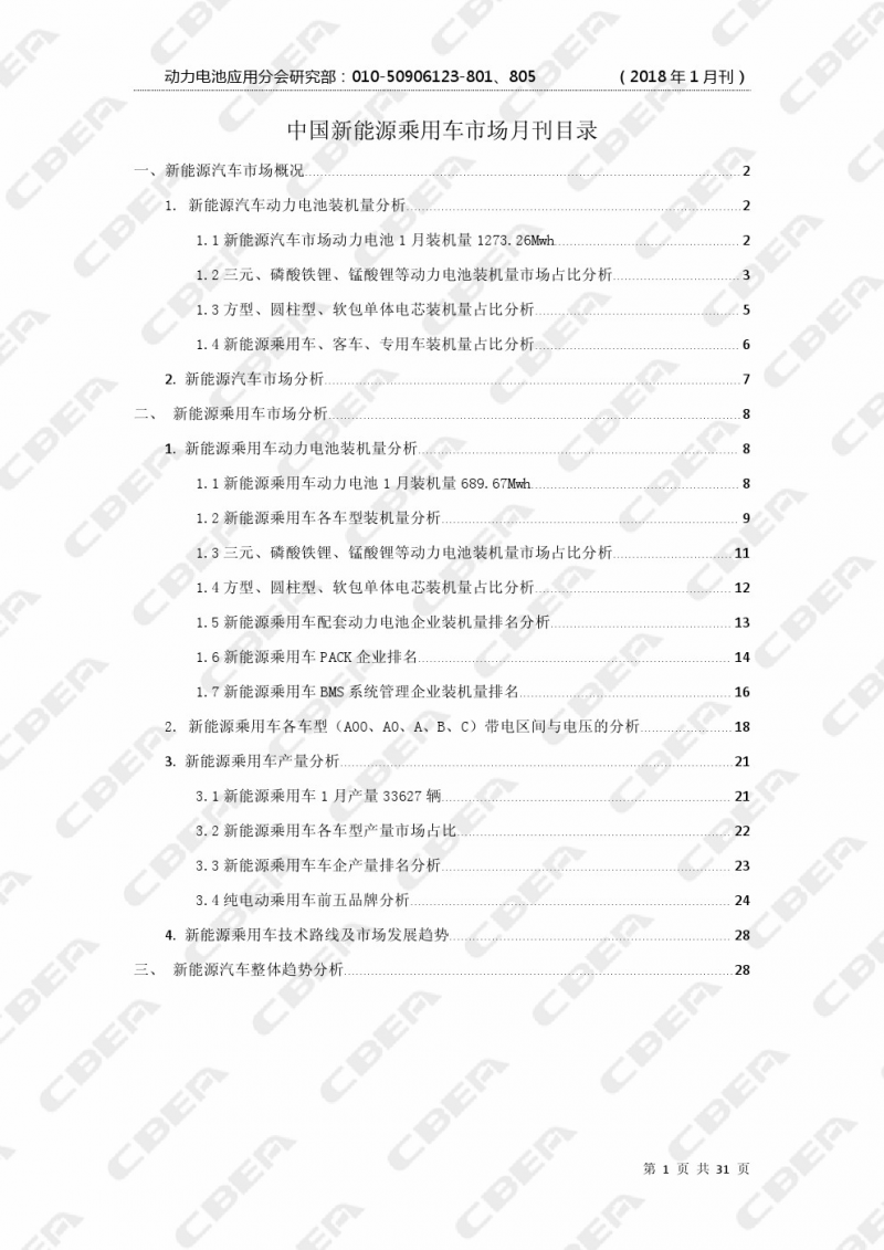 圖2:《2018中國新能源乘用車市場(chǎng)月報(bào)(1月刊)》目錄