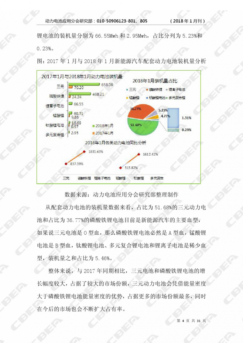 動(dòng)力電池應(yīng)用分會(huì)研究部收集了2018年1月的裝機(jī)量 數(shù)據(jù),并主要利用1月份數(shù)據(jù),就乘用車、客車、專用車不同車型分別進(jìn)行了梳理,對(duì)不同電池類別、不同材料、不同廠家、不同技術(shù)的相關(guān)數(shù)據(jù)變化作細(xì)致深入的分析,找尋新能源汽車市場(chǎng)規(guī)律,研判未來發(fā)展趨勢(shì)。