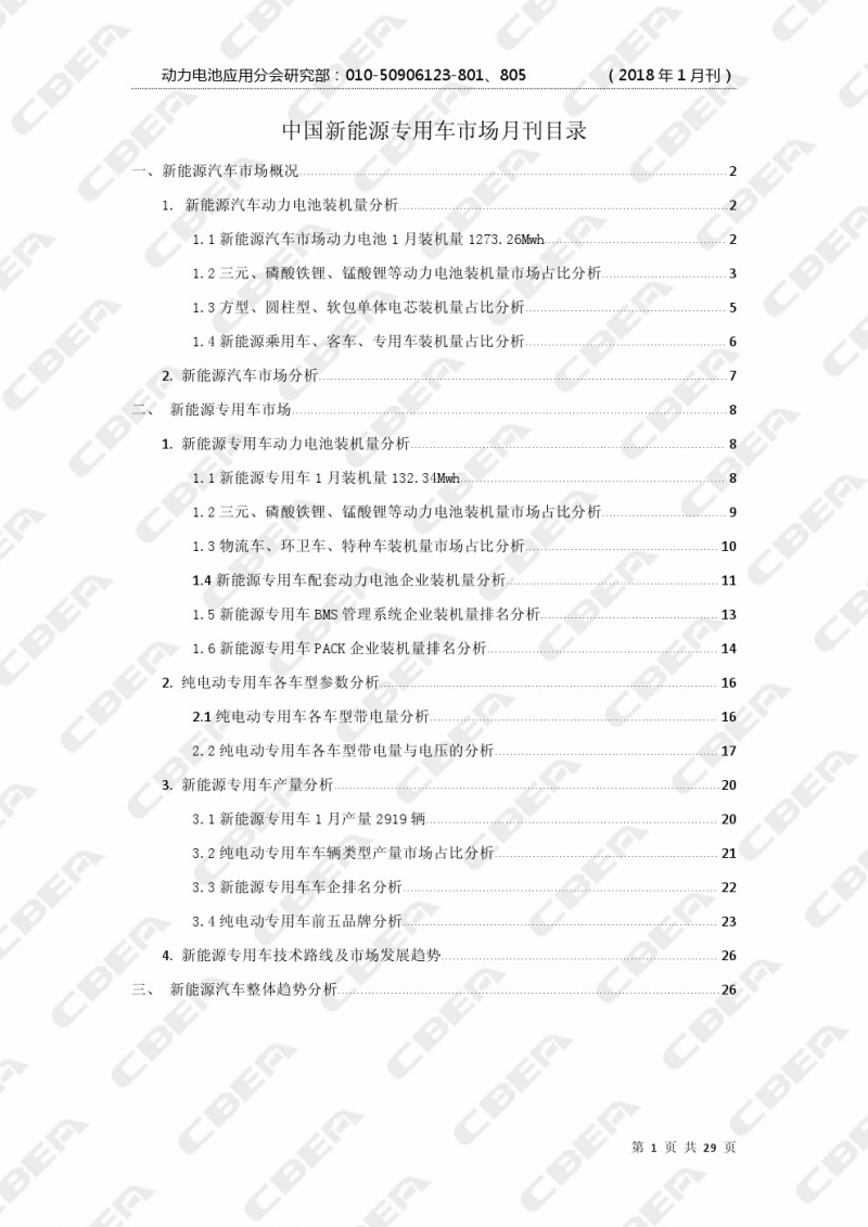 圖8:《2018中國新能源專用車市場(chǎng)月報(bào)(1月刊)》目錄