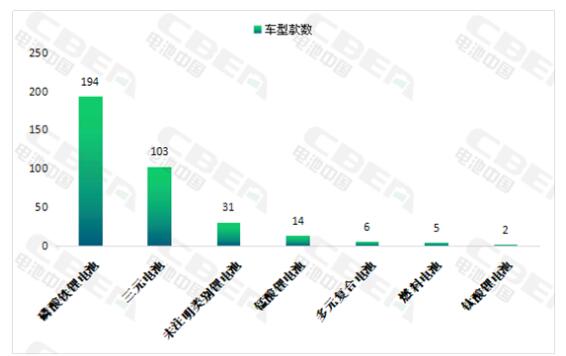 從配套電池類別來看,本批公示目錄以磷酸鐵鋰電池和三元電池為主,分別配套194款車型和103款車型,分別占本批公示目錄總車型的54.65%和29.02%,磷酸鐵鋰電池主要應(yīng)用于新能源客車方面,而三元電池主要應(yīng)用于新能源乘用車和新能源專用車方面;未注明類別鋰電池配套31款車型,占比為8.73%;錳酸鋰電池配套14款車型,占比為3.94%;多元復合電池配套6款車型,占比為1.69%,全部應(yīng)用于新能源專用車方面;燃料電池配套5款車型,占比為1.41%;鈦酸鋰電池配套2款車型,占比為0.56%,全部應(yīng)用于新能源客車方面。