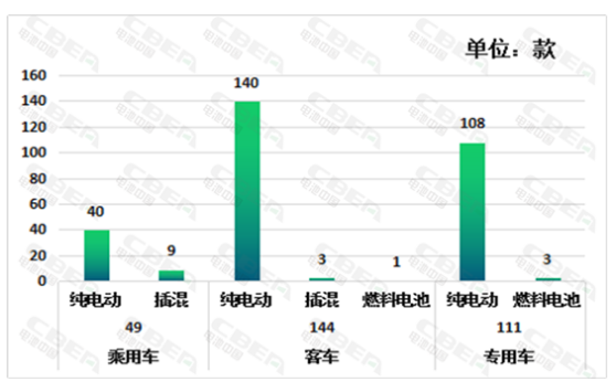 從動力類型來看,本批推薦目錄的49款新能源乘用車車型中包含40款純電動車型,9款插電式混合動力車型。