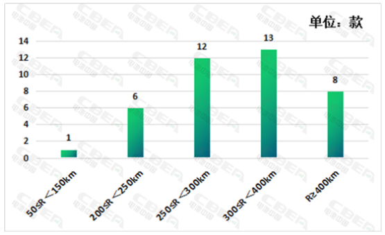 從純電動乘用車續(xù)駛里程來看,40款純電動乘用車車型中除1款車型續(xù)駛里程低于150km外,其余39款車型續(xù)駛里程均在150km以上。續(xù)駛里程最高達416km,是北京汽車股份有限公司生產的BJ7000C5D3-BEV純電動轎車,搭載的是寧德時代新能源科技股份有限公司提供的三元電池,電池系統(tǒng)能量密度為151.4Wh/kg。