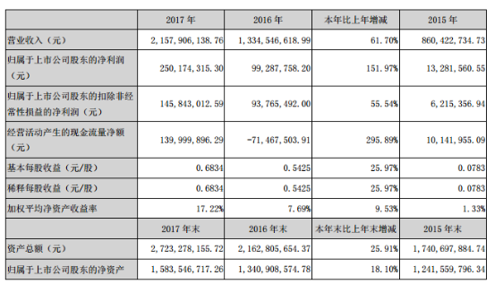 4月2日,當(dāng)升科技公布2017年度報(bào)告。報(bào)告顯示,公司實(shí)現(xiàn)營業(yè)收入215,790.61萬元,同比增長61.70%。實(shí)現(xiàn)凈利潤25,017.43萬元,同比增長151.97%。2017年公司鋰電材料生產(chǎn)量10141.85噸、銷售量9763.86噸,分別同比增長25.81%和21.73%。