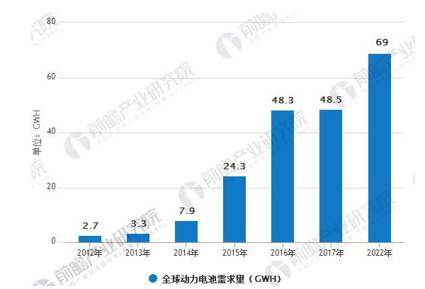 2017年全球應用于電動汽車動力電池規(guī)模為69.0GWh,是消費電子、動力、儲能三大板塊中增量最大的板塊。預計到2022年全球電動汽車鋰電池需求量將超過325GWh,相比2017年增長3.7倍。