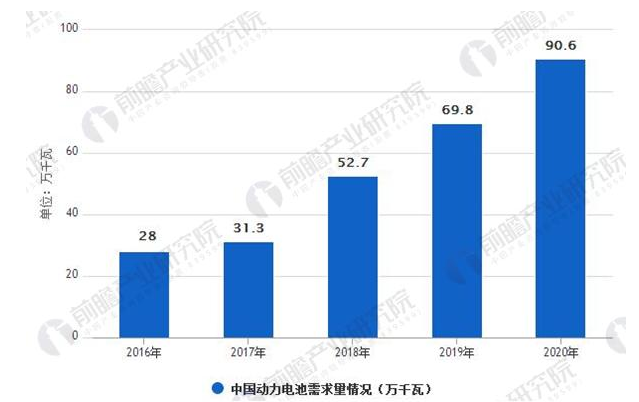 2016-2020年中國動力電池需求量情況
