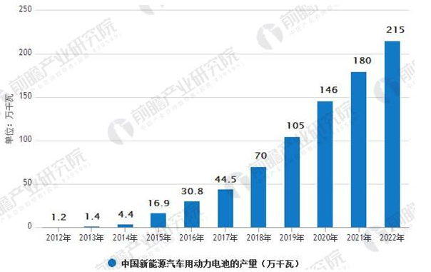 2012-2022年中國新能源汽車用動力電池的產(chǎn)量(GWh)