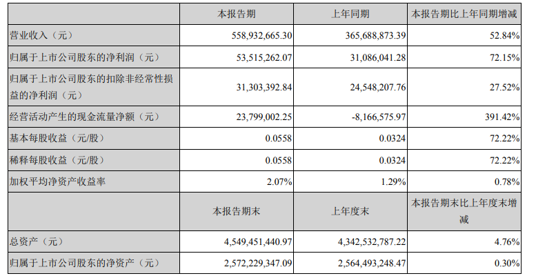 4月19日晚間,雅化集團(tuán)(002497)發(fā)布2018年第一季度報告。2018年1-3月公司實現(xiàn)營業(yè)收入55893.27萬元,同比增長52.84%;實現(xiàn)歸屬于上市公司股東的凈利潤為5351.53萬元,同比增長72.15%;基本每股收益0.0558元。對于營業(yè)收入增長,公司稱主要系鋰產(chǎn)品銷售增加所致。