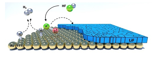 實(shí)驗(yàn)和計(jì)算結(jié)果指出,電池充電過(guò)程中會(huì)產(chǎn)生氟化氫(hydrogen fluoride)電化學(xué)反應(yīng),從電解質(zhì)轉(zhuǎn)變成固態(tài)氟化鋰并生成氫氣,這類反應(yīng)高度依賴石墨、石墨烯和金屬等電極材料,證明電池催化劑的重要性。