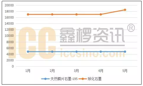 圖:2018年1-5月天然鱗片石墨及球化石墨價(jià)格走勢