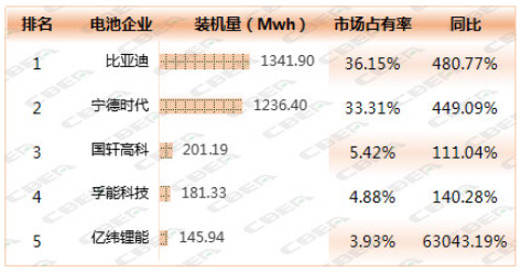 2018年4月排名前五電池企業(yè)分析