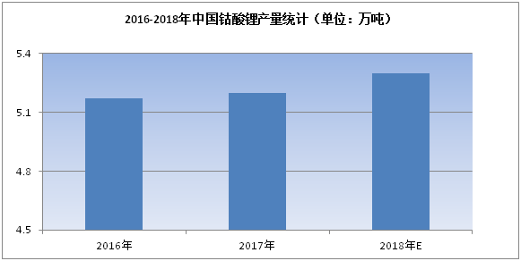 圖1 2016年至2018年中國鈷酸鋰產量統(tǒng)計圖