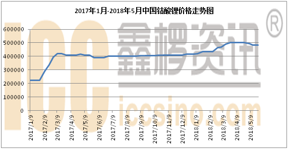 圖2 2017年至2018月4月鈷酸鋰(LCO)價格變化分析