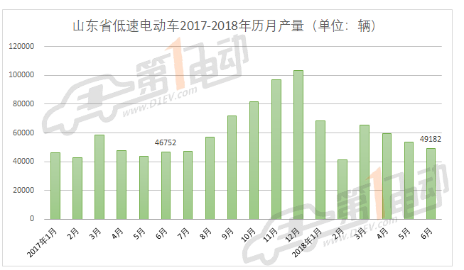 山東低速電動(dòng)車產(chǎn)量在6月依然呈現(xiàn)出下滑趨勢(shì)。據(jù)山東省汽車行業(yè)協(xié)會(huì)統(tǒng)計(jì),2018年6月,山東生產(chǎn)低速電動(dòng)車49182輛,環(huán)比下降8.43%,同比上升5.2%。今年第二季度山東低速電動(dòng)車產(chǎn)量達(dá)162278輛,同比上升17.18%。