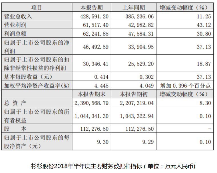 杉杉股份(600884)7月31日晚發(fā)布半年業(yè)績(jī)預(yù)告。2018年1-6月,公司實(shí)現(xiàn)營業(yè)收入428,591.20萬元,同比上升11.25%;實(shí)現(xiàn)歸屬于上市公司股東的凈利潤(rùn)46,492.59萬元,同比上升37.13%;實(shí)現(xiàn)歸屬于上市公司股東的扣除非經(jīng)常性損益的凈利潤(rùn)30,346.41萬元,同比上升18.87%。