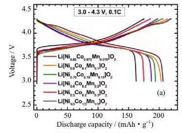 圖3:不同鎳含量材料的放電容量圖