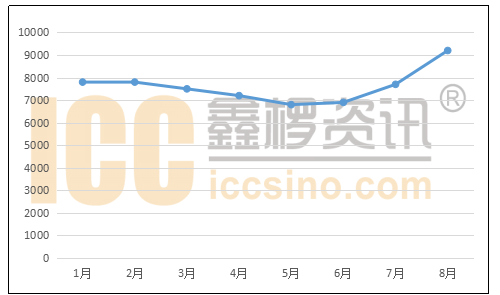 圖:2018年1-8月國內(nèi)溶劑(DMC)價(jià)格走勢