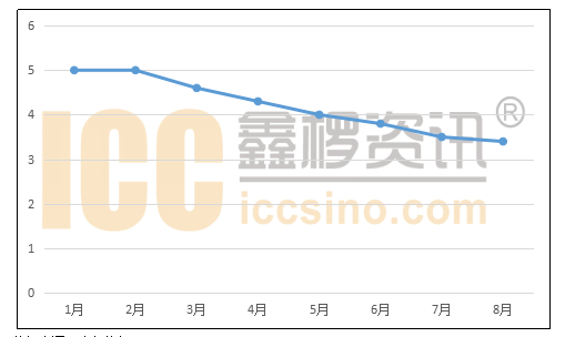 圖:2018年1-8月國內(nèi)電解液價(jià)格走勢